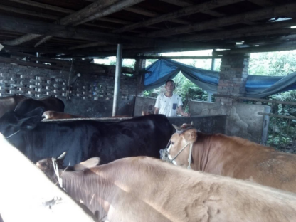 在村支两委与驻村帮扶工作队帮助下,我申请了5万元扶贫贷款,买来材料和小牛,把养牛事业搞了起来。