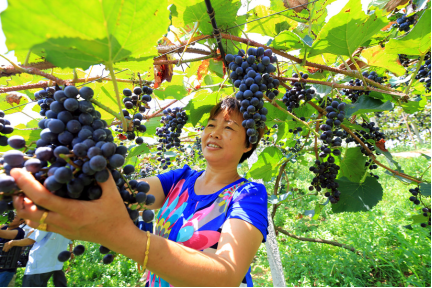 (彭吉武妻子周亚容收获自家高山刺葡萄)