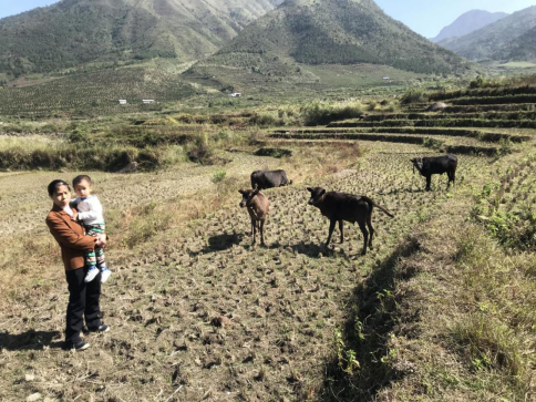 (任满花带着罗捡花的儿子罗胜丙放牛)
